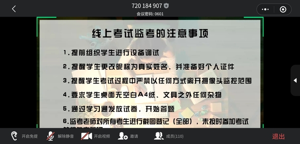 接着胡诗帆老师结合理学院从4月份以来开展的线上周测情况,介绍了线上考试的组织与策划以及相关监考方面的经验和注意事项。线上周测主要通过腾讯会议软件、哔哩哔哩直播实现。学生提前进入网络会议室调试设备,辅导员在测试。前期准备、测试工作结束后,将试题发布于年级群中,并通过腾讯会议室视频功能进行监考。测验结束后,限定学生在5分钟之内将答卷拍照上传至指定人员处。胡诗帆还指出在正式考试中摄像头的摆放位置调试极为重要,考试之前至少提前半小时对学生摄像头角度进行调试,摄像头应置于学生侧后方,画面中应能够清晰显示学生、桌面以及看题设备屏幕,尽可能减少监控盲区,提高监考的有效性。