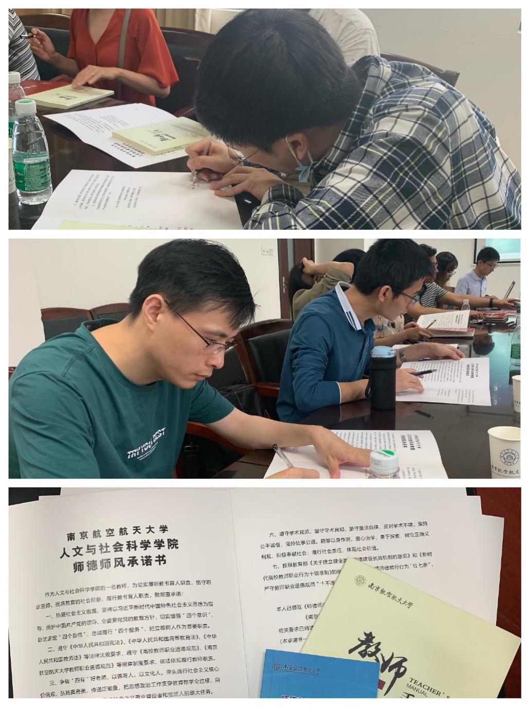 此次宣讲是人文学院师德师风建设月系列活动之一,老师们会后分别领取了《师德师风教育口袋书警示案例》及《南京航空航天大学教师手册》,并签订《师德师风承诺书》。学院希望能通过多种活动形式,引导广大教师切实履行教书育人职责,筑牢师德之基,锻造师德之魂,积极营造风清气正的育人环境。
