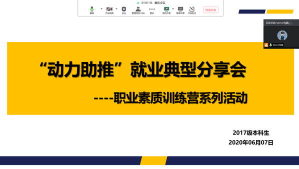 6月7日,能源与动力学院举办了职业素质训练营之就业典型分享会,本次活动采用线上会议室的形式举行,邀请了2016级邓泽群、曾昊、石子明、唐楠四位优秀毕业生从职业规划、自我定位、面试经验等方面开展专题分享与交流,辅导员张鹤千、李绍嘉及150余名本科生参与了本次分享会。