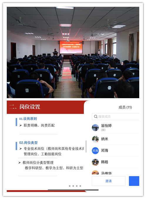 6月10日,计算机科学与技术学院/人工智能学院在计算机学院楼113报告厅召开全院教职工大会,介绍学院巡察整改落实情况、人工智能发展规划实施方案和新一轮岗位聘任方案,因出差等原因不能到场的教师通过腾讯会议线上参加会议。学院党委副书记管祎主持会议。