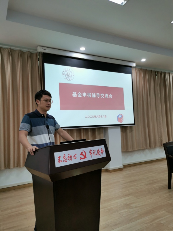 顾冬冬做了题为《顶层设计、难点切入、细致入微—国家自然基金申请的一点思考》的报告,基于学校和学院基金申报的现状,分析了学院近年来基金申报工作的优势和不足。而后,从“选题的背景”、“如何凝练科学问题”、“如何撰写基金申请书”等多个方面和申请人、评审专家、基金委工作人员等多个视角对基金申请书的撰写进行了讲解,并结合个人申报优青的经验,细致介绍了优青申报的要点。