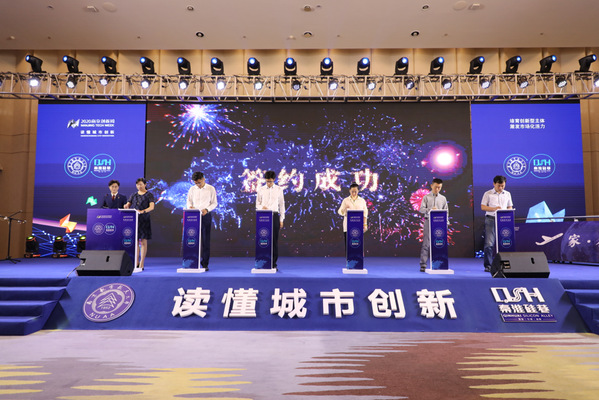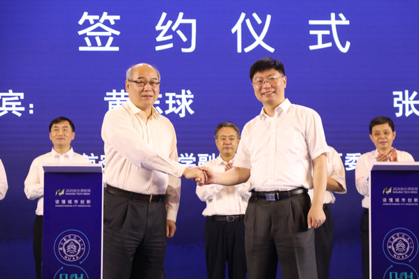 黄志球与秦淮区委常委、常务副区长张纲分别代表学校和秦淮区,签署了《南京航空航天大学秦淮硅巷大学科技园合作协议》。