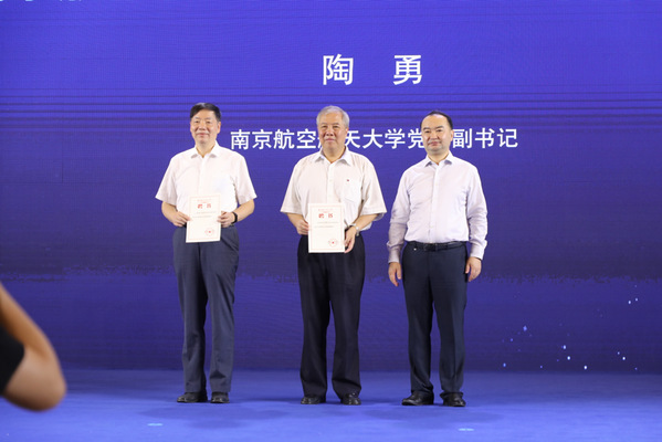 参会领导共同启动飞机起航推杆,标志着南航与秦淮区的校地融合在新的起点再度扬帆启航。