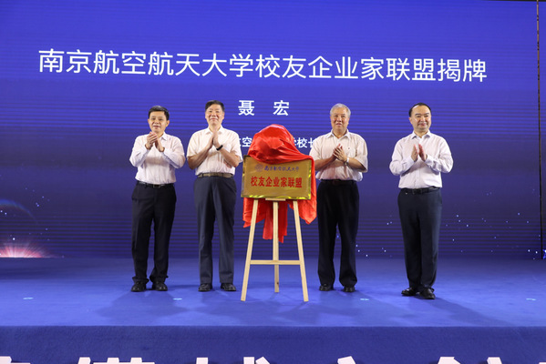 吴光辉、史坚忠、聂宏、陶勇共同为南京航空航天大学校友企业家联盟揭牌。