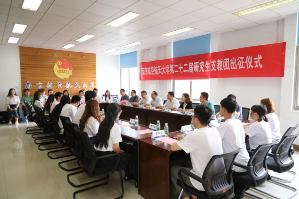 6月24日中午,我校第二十二届研究生支教团出征仪式在将军路校区校团委会议室举行。校党委副书记陶勇,学生处处长侍旭、研工部部长张启钱、校团委副书记(主持工作)王静及校团委全体成员出席活动,第二十届研支团代表及第二十二届研支团全部17名成员参加活动,活动由校团委副书记赵铮主持。