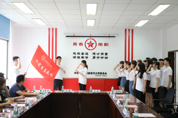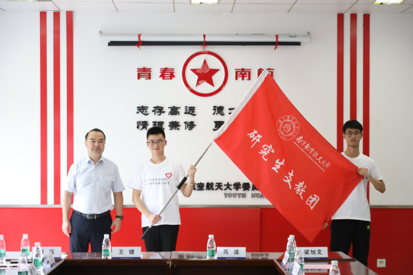 王静宣读了《关于成立南京航空航天大学第二十二届研究生支教团的决定》。侍旭、张启钱为研支团全体成员发放了装有学习用品和常用药品的“爱心礼包”。