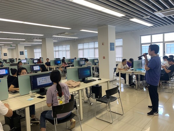 最后,全体研究生集体前往了位于一号楼的计算机中心,在洪峰老师的指导下,同学们分别扮演监考员和被监考者,通过利用计算机中心的电脑登陆在线会议软件,对整个监考过程进行了一次完整的模拟与演练,同学们在充分了解了整个监考流程后,也为即将到来的下一场的考试确定了监考的人选。