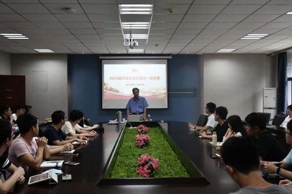 2020年6月22日,电子信息工程学院围绕“守初心担使命,奔跑追梦新征程”主题开展了毕业生“最后一堂党课”活动。本次党课特别邀请了校关工委常务副主任丁荣茂老师和同学们分享双百年奋斗目标历史衔接期的学思践悟,会议由党支部书记谢云主持,支部全体党员参加。