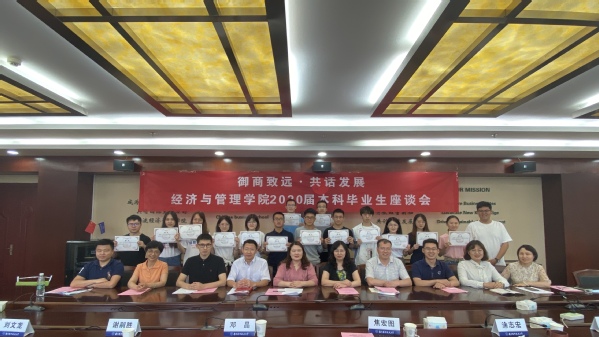 6月23日上午,经济与管理学院“御商致远•共话发展”2020届本科毕业生座谈会在经管楼604会议室举行。经济与管理学院党委书记焦宏图、党委副书记涂志宏、副院长邓晶、各系部负责人、教务员、毕业班辅导员以及毕业生代表们参加了此次活动。