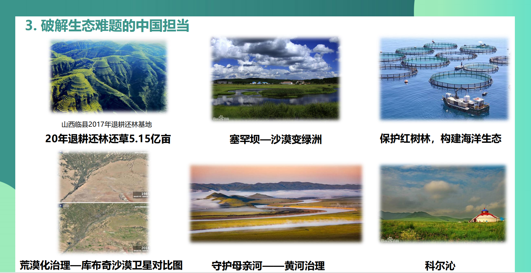 认识生态危机的根源以后,又要如何去解决这个问题?在最后一部分“哲学走向荒野,生态问题何以解决”中,陈雷向同学们介绍了中国政府是如何应对的。党的十八大以来,我国把生态文明建设和经济建设、政治建设、文化建设、社会建设一起纳入“五位一体总体布局”。这是党和国家层面,从制度、法律、思想等各个方面进行的部署;同时,2018年5月18日,习近平总书记在全国生态环境保护大会上发表重要讲话,阐述了加强生态文明建设必须坚持的六项基本原则。这一系列举措集中体现了破解生态难题的中国担当。