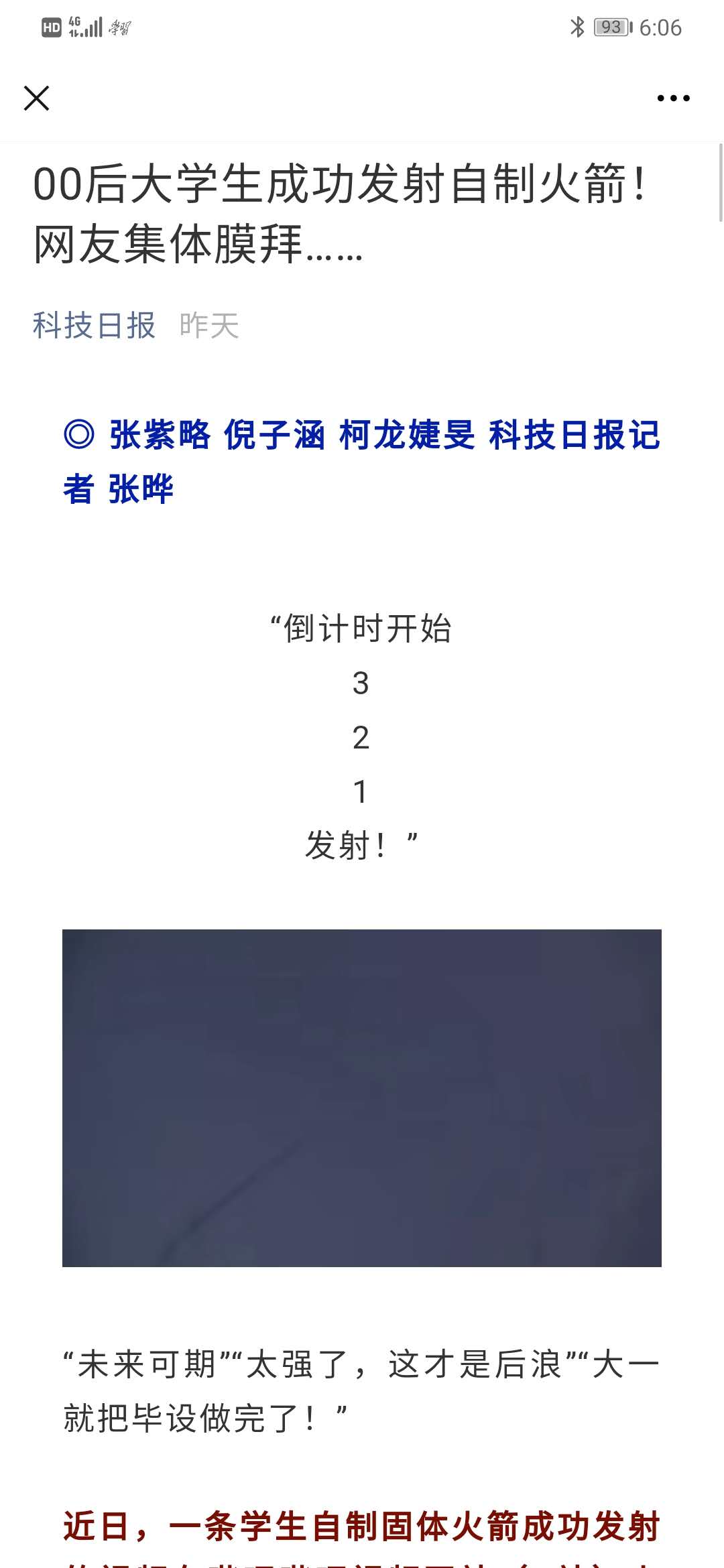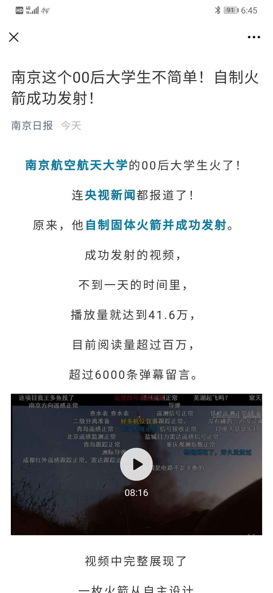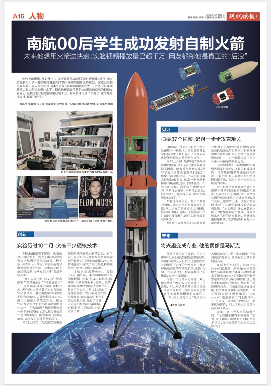 现代快报:南航00后学生成功发射自制火箭