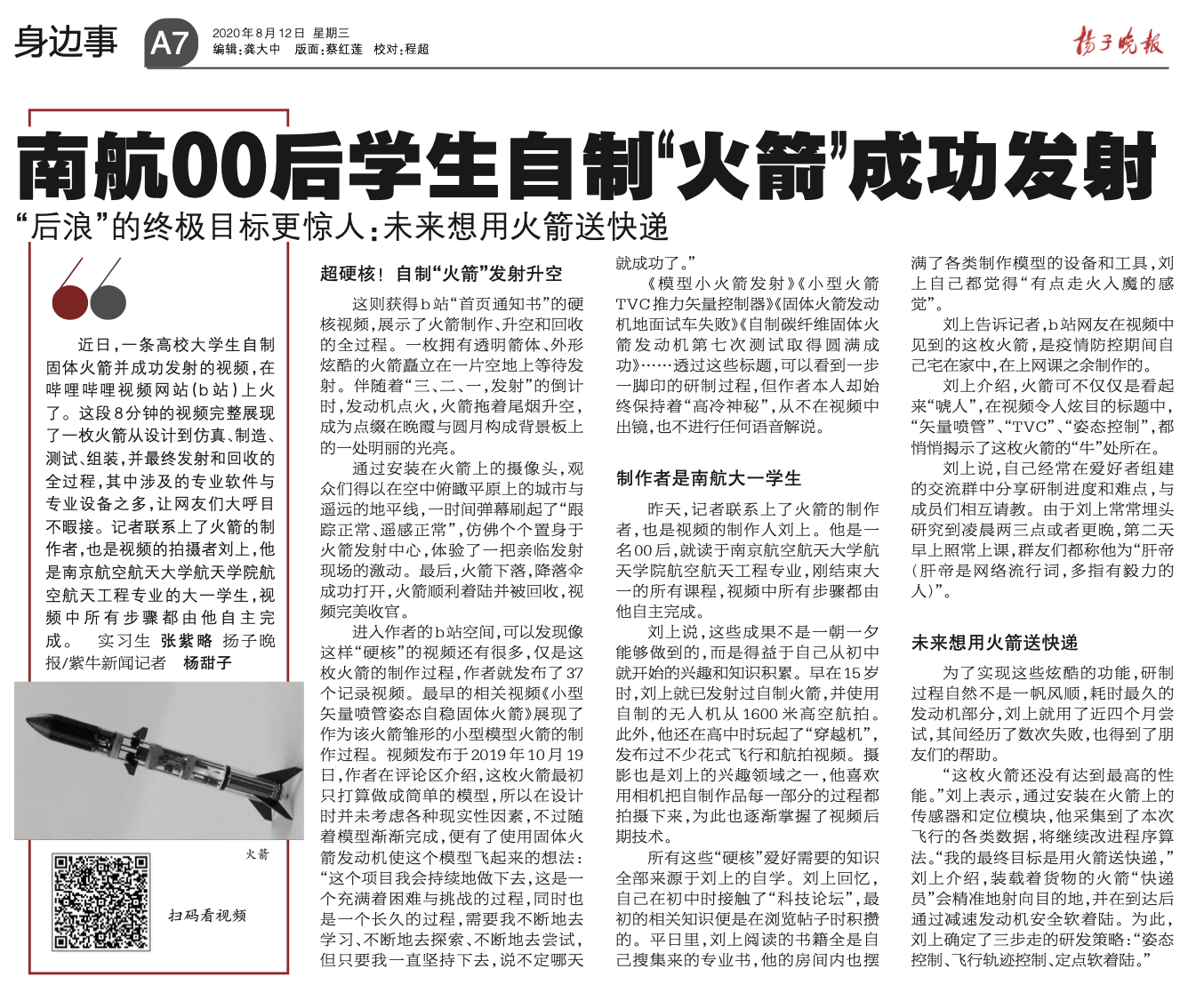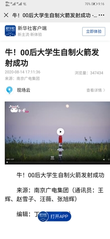 扬子晚报:南航00后学生自制“火箭”成功发射