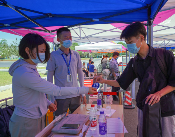 根据学校整体部署,天目湖校区于8月15日-16日组织学生进行返校工作。民航学院(飞行学院)2019级学生共计返校981人。党委常委、组织部部长李遥到校区察看学生返校情况,天目湖校区党工委书记张新明、管委会主任江波,以及管委会、保卫处、后勤集团、校医院、民航学院(飞行学院)等相关单位负责人在现场协调解决相关问题,迎接学生的到来。