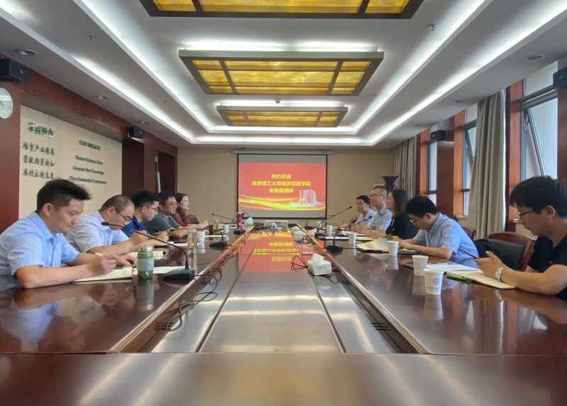 8月24日上午,南京理工大学经济管理学院院长韩晓梅、党委书记臧强、副院长王玉东、副书记游鹏一行来经管学院走访调研。院长周德群、党委副书记涂志宏、副院长邓晶、王子龙、王群伟、谢乃明陪同调研。