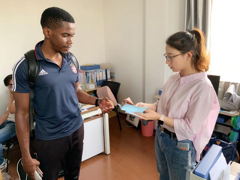 7月21日上午9点,留学生管理办公室主任徐乾正带着新华社两名记者,冒着倾盆大雨从将军路校区北门往东区留学生宿舍赶。疫情期间,校外人员进校需要特别申请,徐乾老师提前为他们办好入校手续,带着新华社记者去采访学校“抗疫先锋”、优秀留学生代表瑞秋。为保证采访过程的流畅和效果,约见记者前,徐乾老师和瑞秋多次核对采访稿,并逐一翻译成英文,整个采访过程非常顺利,事后我校工作人员高效、负责的工作态度也得到新华社采访记者的赞许。在8月10日新华社、人民网等国家主流媒体刊登的“抗疫”专题报道中,我校留学生瑞秋也成为积极投身中国抗击疫情斗争中的在华留学生典范。