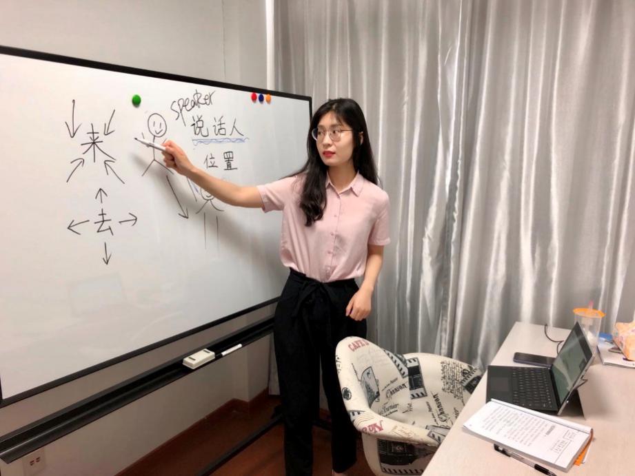 7月14日下午4点30分,学工楼249线上教学专用教室里又响起熟悉的声音:“亲爱的同学们大家好。欢迎大家准时参加今天的汉语交流课。我们今天要讲的内容是……”汉语老师杨笑璐正对着电脑摄像头,站在白板前,而网络的另一端,是数万公里之外因疫情影响无法回中国的留学生们。像这样的越洋直播课程,每次两小时,从下午4点半开始到晚上6点半结束,每周6到8次,暑假期间也不例外。目前,国际教育学院共有专职汉语教师3名,她们承担了我校大部分留学生汉语课程,她们用专业的知识、丰富的教学经验,向境内外的留学生们讲述中国故事、传播中国文化。