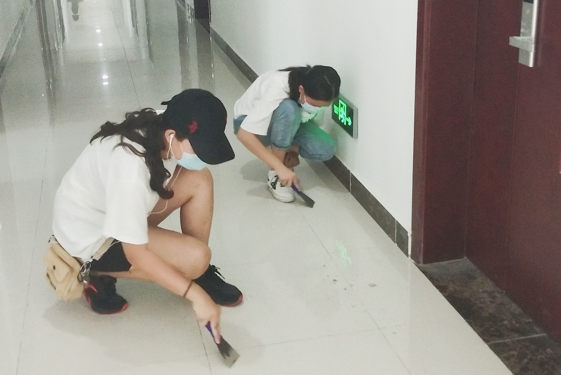 26日,志愿者们包揽了剩余楼层的清洁任务。男生们负责清理墙上的白泥,冲洗卫生间,女生们则负责清洁整个走廊的墙面。经过志愿者们的收尾工作,新院楼的劳动志愿服务画上了圆满的句号。