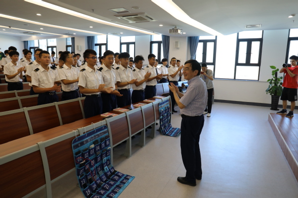 课前,施大宁来到教学楼看望准备上课的老师与学生。身穿统一制服的飞行技术专业学生全班整齐起立,以热烈的掌声欢迎施大宁的到来。施大宁向任课教师致以慰问,并鼓励同学们认真学习,为民航强国的发展贡献青春力量。