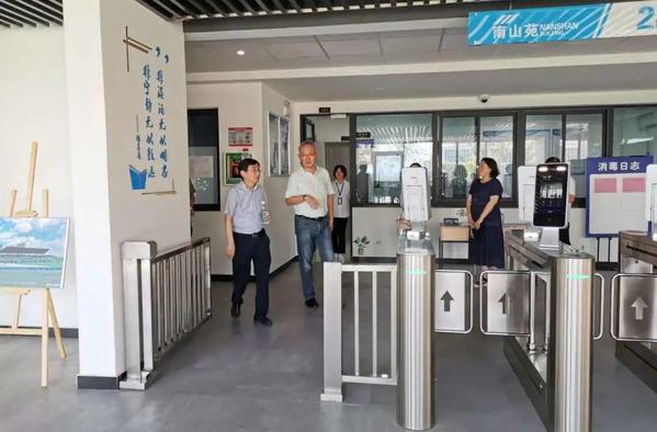 离开教学楼,施大宁一行在校区管委会主任江波陪同下来到宿舍区。他首先在宿舍一楼的自习室,慰问了正在自习的“海外学习中心”学生,关心他们疫情防控期间接受国际课程的情况。