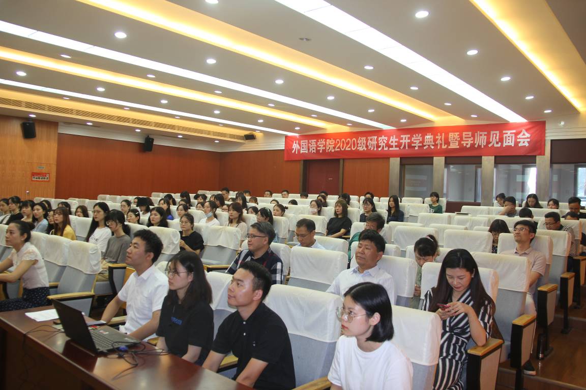 9月3日上午,外国语学院2020级研究生开学典礼暨导师见面会于学院国际会议中心举行,外国语学院院长范祥涛、副院长徐以中、副院长姜礼福、研究生导师、研究生辅导员及2020级全体研究生参加了典礼,典礼由学院党委副书记梁薇主持。