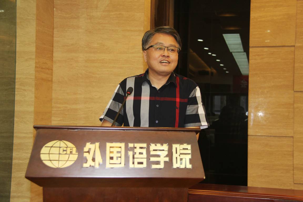 研究生导师代表张立新对新生们表达了殷切地嘱托。张立新从教育的四个层次谈起,提出了要智慧学习,同时强调了作为语言类研究生读书、研究的重要性。