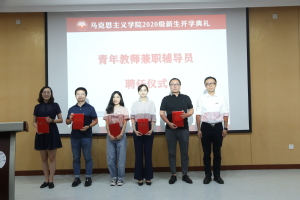 为了更好地突出青年教师在学术科研水平、成长成才经历等方面对学生的指导,马院探索聘任青年教师兼职担任辅导员。徐正扬为李飞翔、刘林娟、张小斐、胡媛媛、施灿业五位青年教师兼职辅导员颁发聘书。徐正扬在讲话中首先感谢马院广大教师在学校研究生立德树人工作中的贡献,希望马院同学认真学习习近平总书记对研究生教育工作的重要指示精神,做到求真务实、治学严谨,恪守学术诚信、学术道德和学术规范,做一名德才兼备的研究生。
