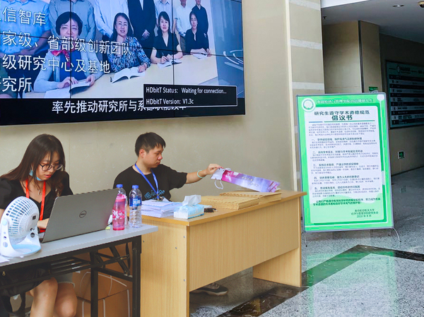 8月30日上午,校党委书记郑永安带队专程来到学院研究生迎新报到处,详细询问了学院迎新报到工作的开展情况,表达了学校对于2020级研究生新生的关心和慰问,同时领导们对学院将新生科研诚信学风建设融入迎新宣传的做法予以了赞扬和肯定,并希望学院能进一步加强科学家精神的培育工作,为国家高层次科研人才充实后备力量。