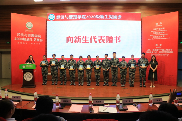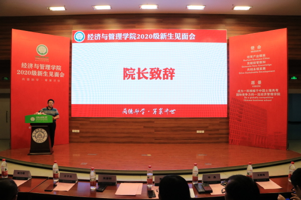 9月14日,经济与管理学院2020级新生见面会在一号楼四楼报告厅举行,学院全体领导、各系主任、20级各班班主任、各年级辅导员以及2020级全体同学参与会议。
