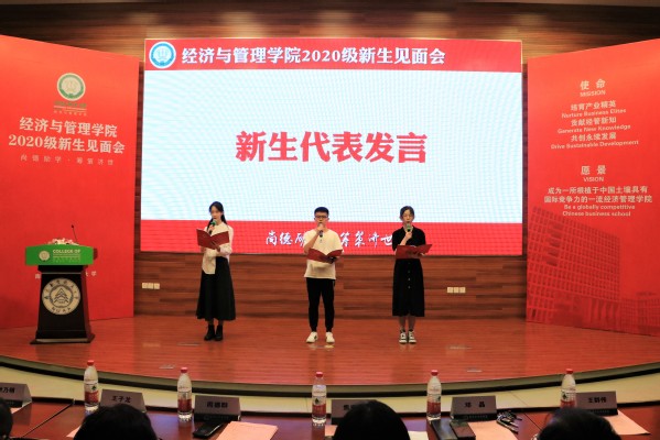 三位新生代表发言,融经管共性,展鲜明个性,代表新生表达了进入经管、融入经管的心声。 学院党委书记院焦宏图向新生代表赠送《如何读大学》一书,希望他们读后有感,读后能悟,读后躬行。