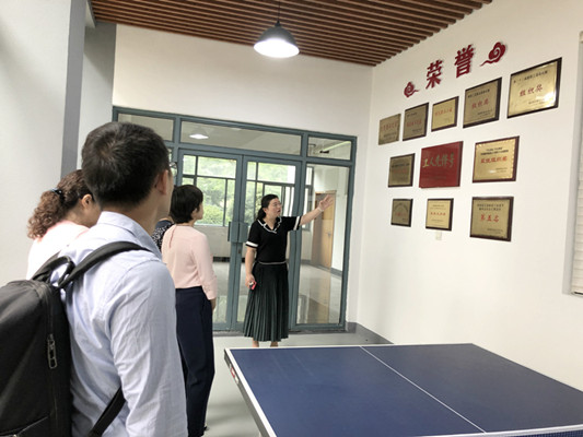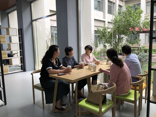 首先,卢逸带领材料院的工会干部依次参观了理学院“师生之家”的户外花园和室内长廊,并对“师生之家”的各项筹备建设工作进行了详细介绍。许赞表示理学院“师生之家”的建设融入了许多对学院文化建设、对学院工会工作的思考以及筹备过程中的经验,在很多方面都是值得借鉴的。