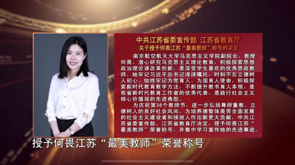 近日,我校马克思主义学院副院长何畏教授被中共江苏省委宣传部、江苏省教育厅授予江苏“最美教师”荣誉称号。