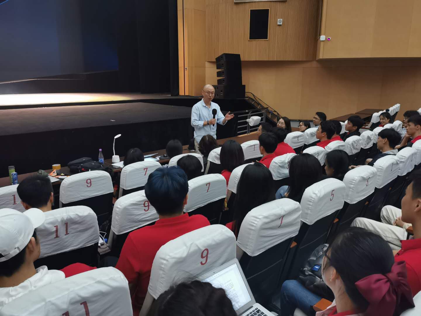 慰问会最后,杭育新用“感谢、投入、期待”三个关键词鼓励全体演职人员,他首先代表学校感谢导演、同学们、相关部门、学院一直以来的支持配合,他强调,王适存教授克服各种困难投入科学研究,取得了突出的科研成果,他把个人的理想追求同爱国和报国紧密结合起来的优秀品质激励了一代又一代南航人,希望同学们也能够像王老师一样,在完成好学业的同时,全身心投入到对角色的诠释和演绎中,互帮互助,共同学习,他期待并相信,在全体演职人员齐心协力之下,一定能够打造好这一版的精品话剧。