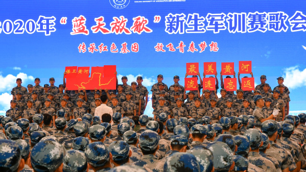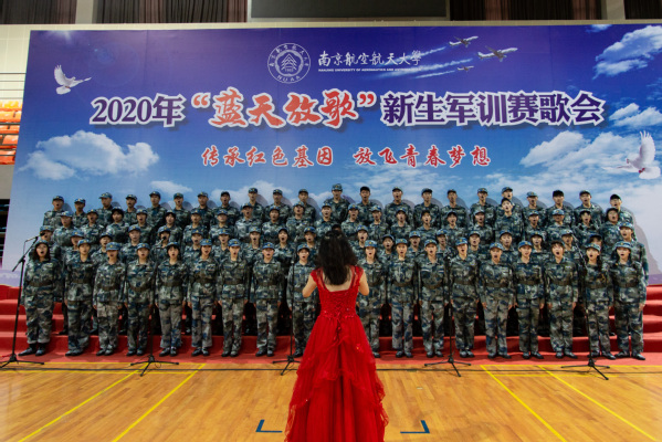 9月22日、23日,“传承红色基因 放飞青春梦想”2020年“蓝天放歌”新生军训赛歌会分别在将军路校区和天目湖校区举行,本次比赛共有二十一支队伍参赛。短短一周时间内,2020级新生在指导老师的带领下精心选歌,刻苦练唱,细心排练,比赛现场带来了一场视听盛宴。