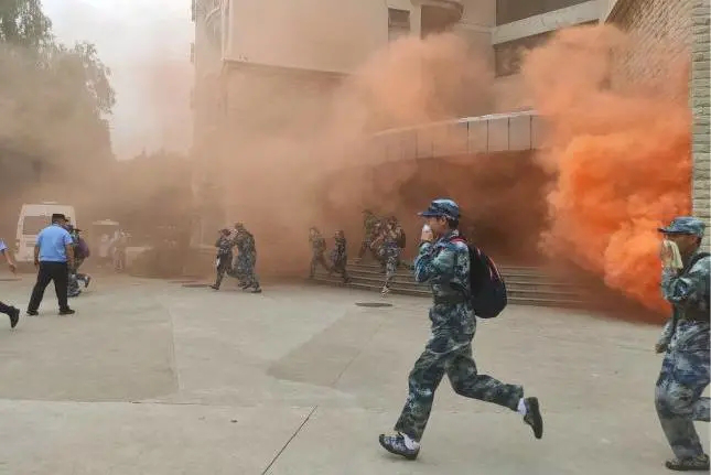 在校卫队员和义务消防员的指引下,学生们用湿毛巾捂住口鼻,伏腰潜行,陆续从消防通道疏散。与此同时,驻区消防中队的灭火救援官兵也及时抵达火灾现场,在了解火势情况后,立即展开全面扑救。15分钟左右,两校区3000余名学生全部疏散完毕。