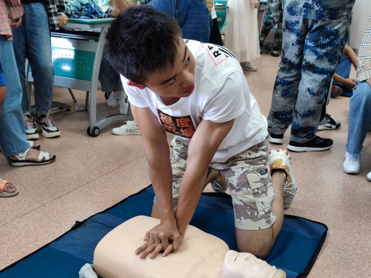 同时,为进一步增进同学们对医疗知识的了解,学校还在9月19-20日对各院安全员进行了系统培训,由校医院专专业医生讲授了心肺复苏的技能要点。