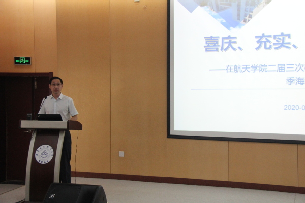 最后,学院党委书记季海群作总结发言。他指出,在学院顺利搬迁至将军路校区新大楼的节点,本次会议的主题是喜庆、充实、和谐、展望。他强调全体师生要剖析发展要素,聚焦学院航向;筑牢“四位一体”,充实学院内涵;弘扬航天精神,维护学院和谐。大会在各项议程结束后顺利闭幕。