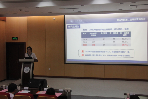 随后,学院副院长朱旭东介绍航天学院绩效分配方案,林晓介绍本科生导师制度,副院长盛庆红介绍研究生招生和一流本科专业建设情况,副院长王寅汇报学院学科和科研工作情况。紧接着教学科研实验中心党支部书记张燕华汇报航天楼楼宇文化建设方案,各系(中心)负责人汇报了工作和本学期工作计划。