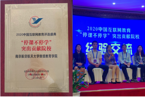 9月26日,作为“2020中国互联网教育‘停课不停学’突出贡献院校”获奖单位,南京航空航天大学继续教育学院应邀参加颁奖仪式。本次活动由全国高校现代远程教育协作组主办、《中国远程教育》杂志社承办,来自全国高校继续教育学院、网络教育学院、成人教育学院,开放大学、职业教育院校的校长(院长)及相关代表200余人参加。