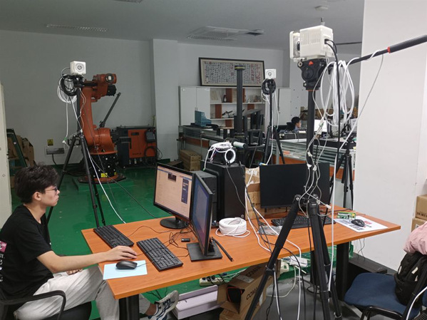 之后,张丽艳教授带领同学们体验了实验室内四台醒目的摄像机,向同学们解释人眼成像的原理,人类通过双眼实现对图案和深度的处理,而实验室的机器视觉系统采用四台摄像机捕捉物体的图像,再将四个图片合成为一张具有物体三维特征的模型,实现机器的虚拟成像。她勉励同学们,数字化视觉识别的研究领域需要同学们具备较好的数理基础以及程序编写的能力,作为有志于投身于数字化视觉识别领域的大学生,要不断提升创新能力、勇于探索未知领域,早期的人脸识别错误百出到现在的广泛应用便是一个很好的例证。同时,科研是一个不断迭代优化的过程,我们需要坚信一切领域的突破只是时间问题,要甘坐冷板凳,练就真功夫。