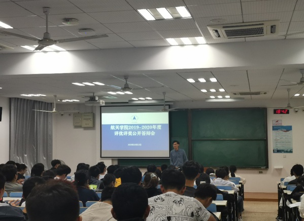 10月13日,航天学院2019-2020学年本科生评优评奖公开答辩会在2103举行。航天学院党委副书记林晓、系统工程系教师黄晗、光电信息系教师施瑶瑶、控制工程系教师华冰、教学科研实验中心教师郑峰婴及各年级辅导员参加答辩会并担任评委,学院全体2020级本科新生到场观摩学习。