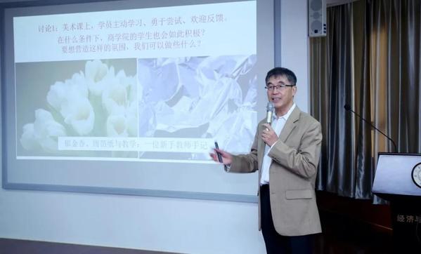 10日上午,梁能的授课主题是关于“案例教学的实质分析与流程设计”。由美术课和管理课课堂区别的案例讨论引入,梁能分析了案例教学的讨论策略与教师角色(放羊、看戏、稻草人、斗牛),总结了案例讨论的“五段论”(导入、讨论、分析、总结、复盘)。梁能做了实质分析的案例示范并分析了实质分析的难点和怎样寻找“Aha”点,最后他介绍了有效案例教学的基本条件:符合学习规律、适合学员特点、实现教学目标并且有利教师本人发展。