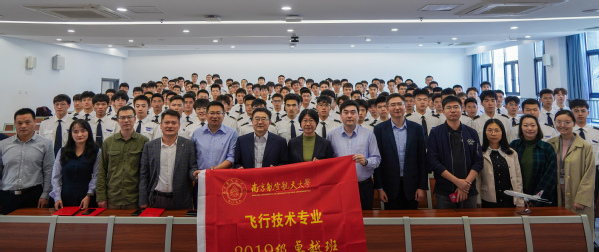 随后,司海青向卓越班班长授旗,标志着2019级飞行技术卓越班正式组建。贡海俊向行业导师颁发聘书;韩冰为班主任颁发聘书。最后,全体飞行技术卓越班开班典礼参加人员合影留念。