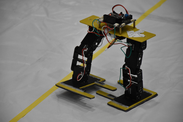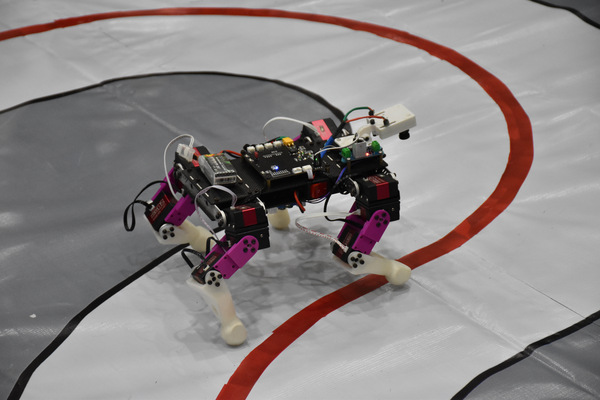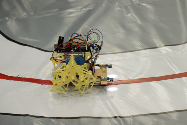 整个比赛过程竞争激烈,现场氛围热情浓厚,参赛选手信心高涨,围观群众高呼精彩。在机器人自主创新设计大赛中, “沙包大拳头队”正信心满满得向评委老师介绍自己队伍的作品,其设计内容为仿生假手机器人的手指、手掌、腕部以及接受腔部分,实现仿真人手的抓取功能,评委老师们对其进行了细致的解说与评价。在“1:10无人车多车交互比赛”项目中,“何其惊心”队表现优异,精确识别了轨道上的锥形标和道路标线,巧妙地完成超车与会车的项目。在“多足仿生机器人”项目中,“御风狼”队在四足行走使机身存在较大抖动的情况下仍然精确识别引线完成比赛内容。
