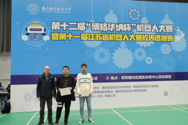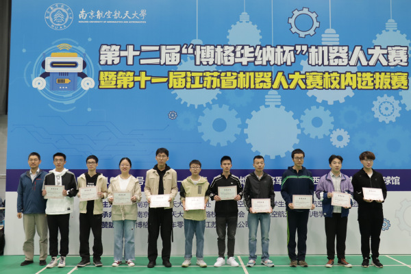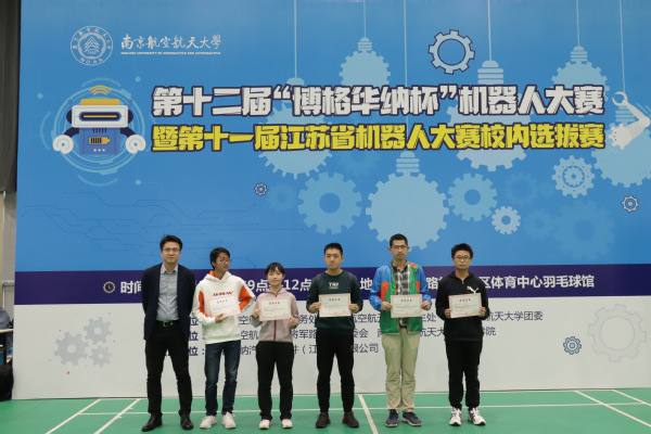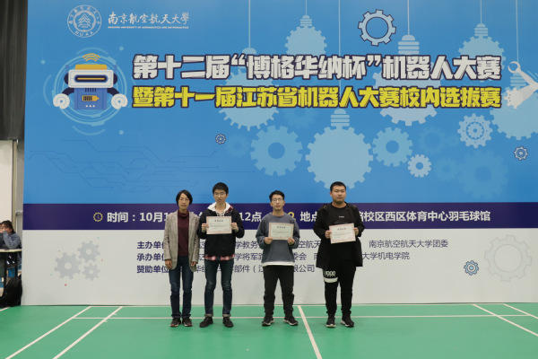10月17日上午,南京航空航天大学第十二届“博格华纳杯”机器人大赛暨第十一届江苏省大学生机器人大赛校内选拔赛决赛及颁奖典礼在将军路校区体育中心羽毛球馆隆重举行。校团委副书记丁琛、机电学院党委副书记徐俊珠、机电学院团委书记侯新闻等嘉宾老师出席本次比赛。评委由博格华纳汽车零部件(江苏)有限公司制造生产部王明明经理、校工程训练中心黄娟、机电学院机械电子工程系王化明老师、机电学院机械电子工程系李成刚老师担任。