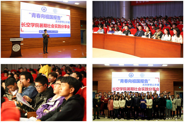 10月17日晚,“青春向祖国报告”系列梦想公开课之“志在长空,路在脚下”——长空学院暑期社会实践分享会在将军路校区一号楼四楼报告厅举办。校团委副书记赵铮、校团委陈思华、周若冰、长空学院团委书记夏昌青、全体辅导员出席。
