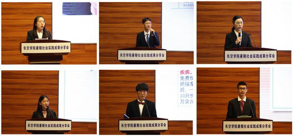 分享会上,获得校级和院级优秀实践团队的十支团队从“山河无恙”、“基层情怀”、“时代华章”、“丹青执笔”四个篇章进行了一场精彩的展示。从“留存战‘疫’记忆——把初心写在抗疫一线”团队的闪亮开场到“脱贫不脱贫,关键看农民”团队的独特分享,再到“放飞梦想,沿河启航”团队的压轴登场,无不展示了长空青年在实践中弘扬伟大的抗疫精神的行动、用坚实的脚步丈量大地的身影、以及在祖国繁荣、社会进步中激扬青春风采的姿态,还有他们辛勤守望育人梦、归乡耕耘报国情的担当。