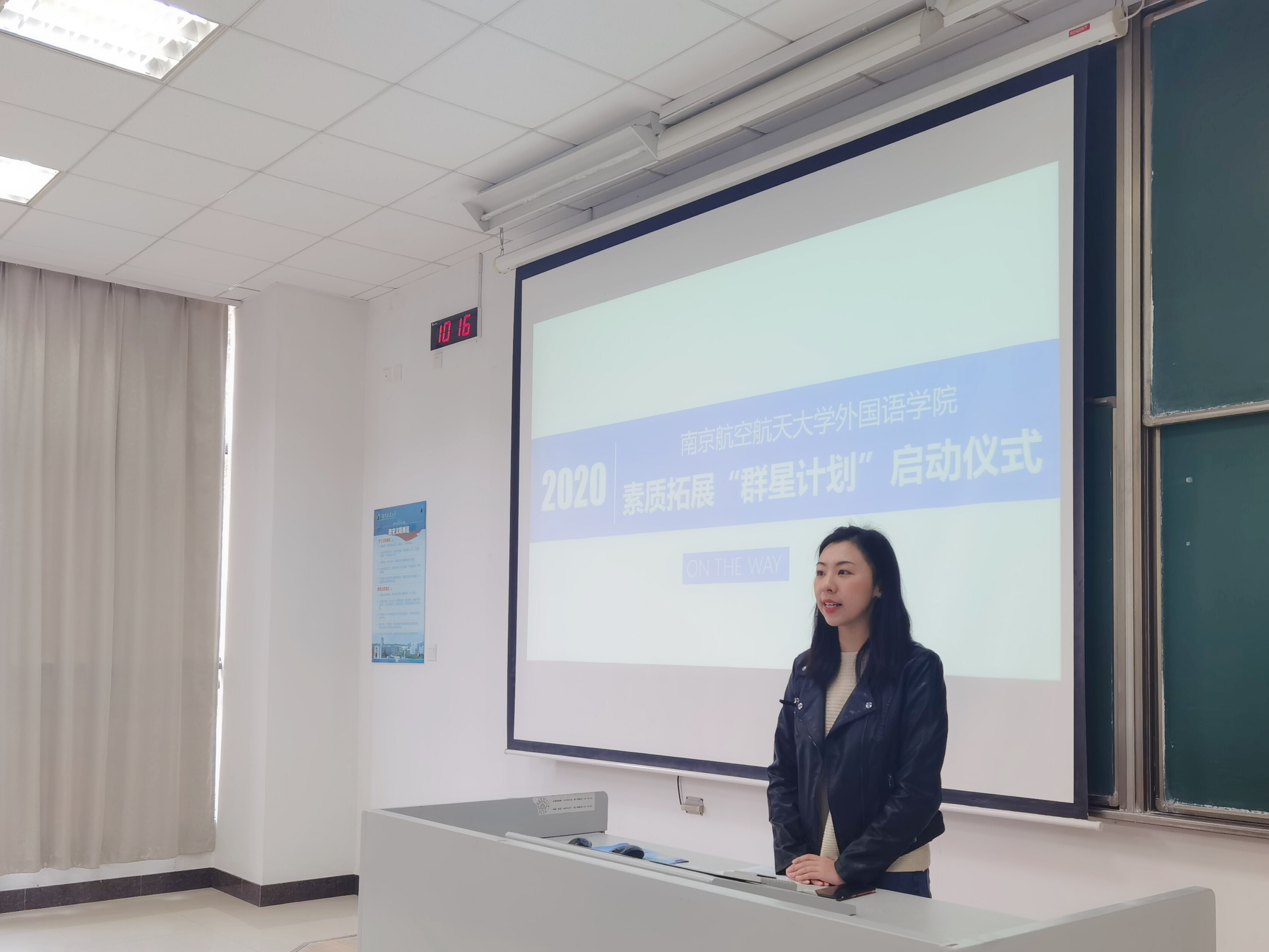 随后,盛嘉贤介绍了南京航空航天大学素质拓展“群星计划”的实施背景和积极意义。素质拓展“群星计划”工程对学生理想信念、法律素质、体艺素质等12项素质能力进行全方位动态考察,旨在培养具有责任意识、创新精神、国际视野、人文情怀的社会栋梁和工程英才。