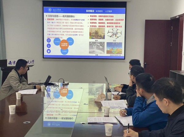 随后,高有涛从控制系基本情况、科研工作、人才培养等多方面进行了汇报,随后双方就航天器动力学与控制、航天器平台与载荷等相关课程建设、实验设置、教学大纲等方面进行了交流讨论。