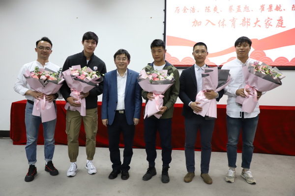 随后,为五位新教师厉余浩、陈爽、蔡孟彪、崔景航、陈良举行入职仪式,欢迎他们加入到南航体育部这个大家庭,体育部领导班子成员为他们佩戴南航校徽。五位新教师一一发言,感谢学校的选择与信任,他们会为南航体育的美好明天不懈努力。
