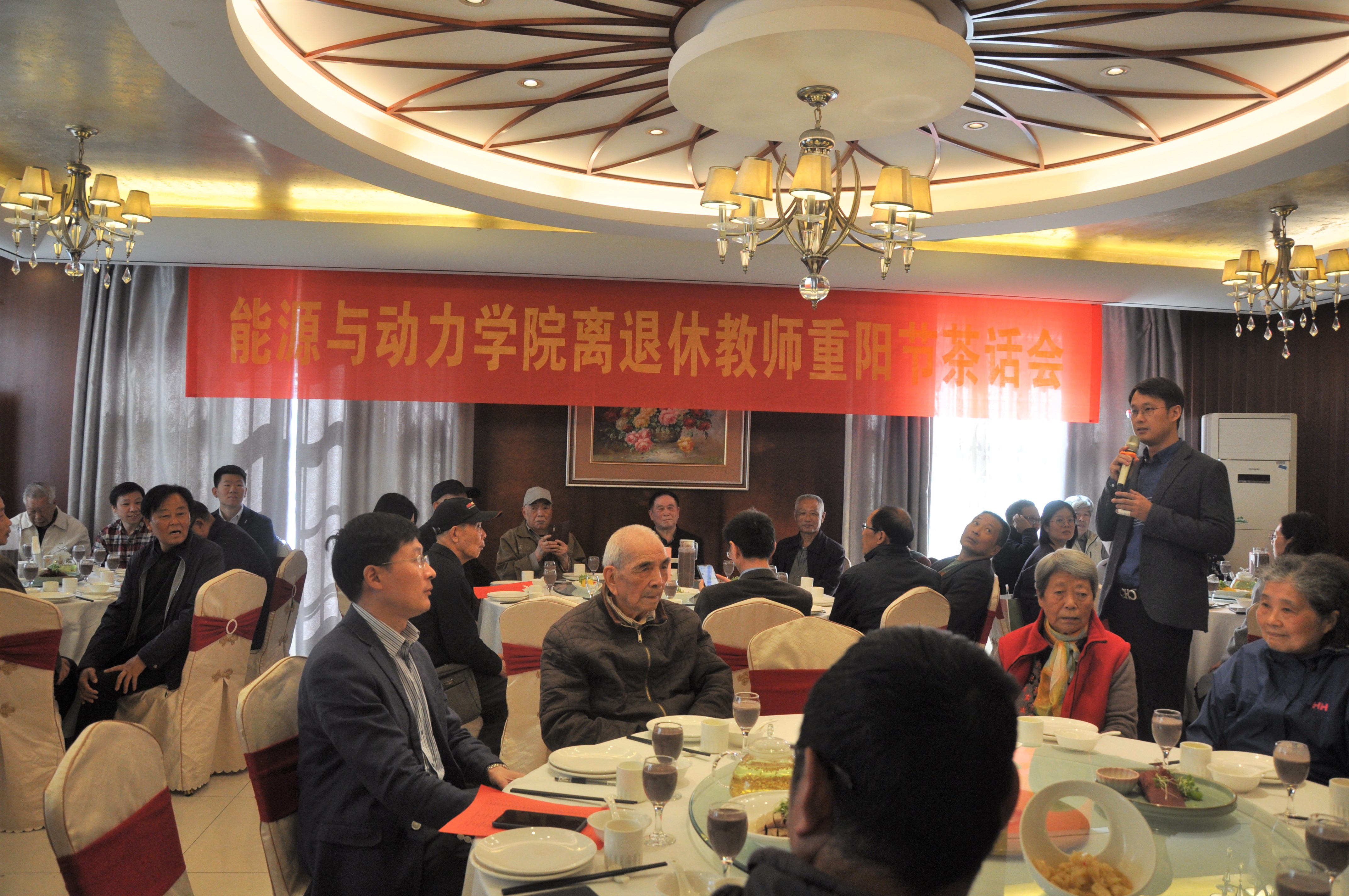 2020年10月24日中午,能源与动力学院组织召开离退休教师重阳节茶话会。全体院领导、系主任支部书记代表等与40余名离退休教师们欢聚一堂,畅叙情谊,共话学院建设发展,表达重阳节问候与温情。活动由学院党委书记王中叶主持。